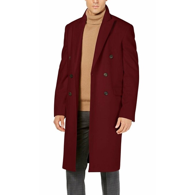 Shop Calvin Klein Mens Coat Wine Red calvin klein slim fit overcoat