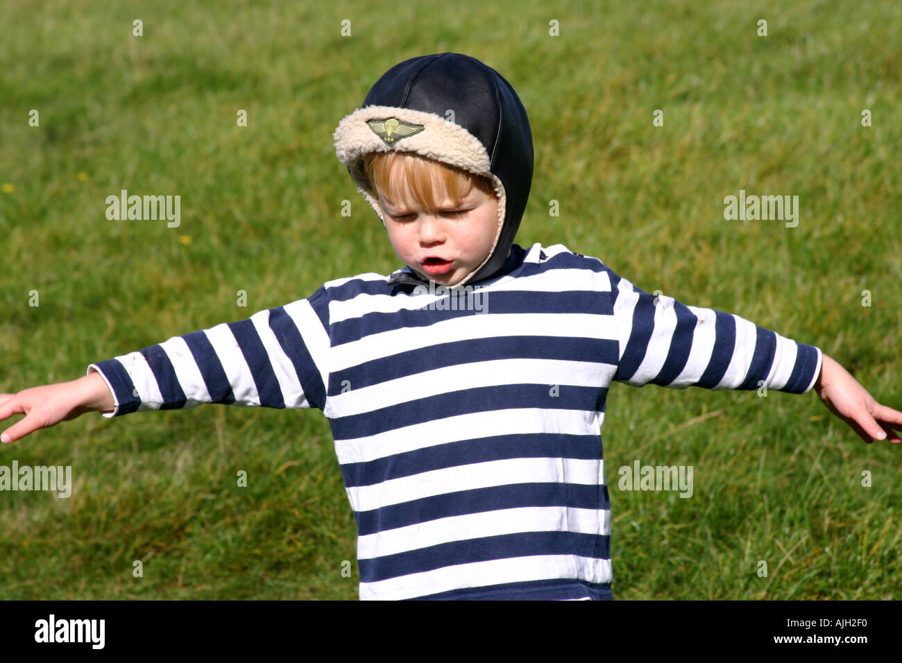 three year old boy playing aeroplanes helmet for three year old
