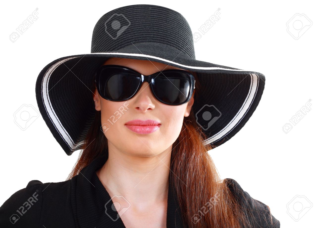 Beautiful Woman In Black Sunglasses And sunhat sunglasses