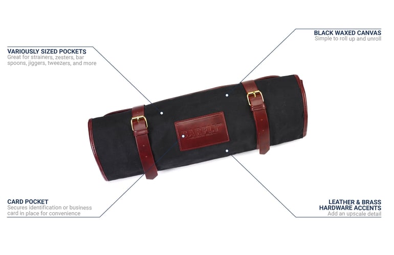 Barfly M30930 Mixology Gear Roll - Waxed Canvas & Leather, Black barfly mudguard