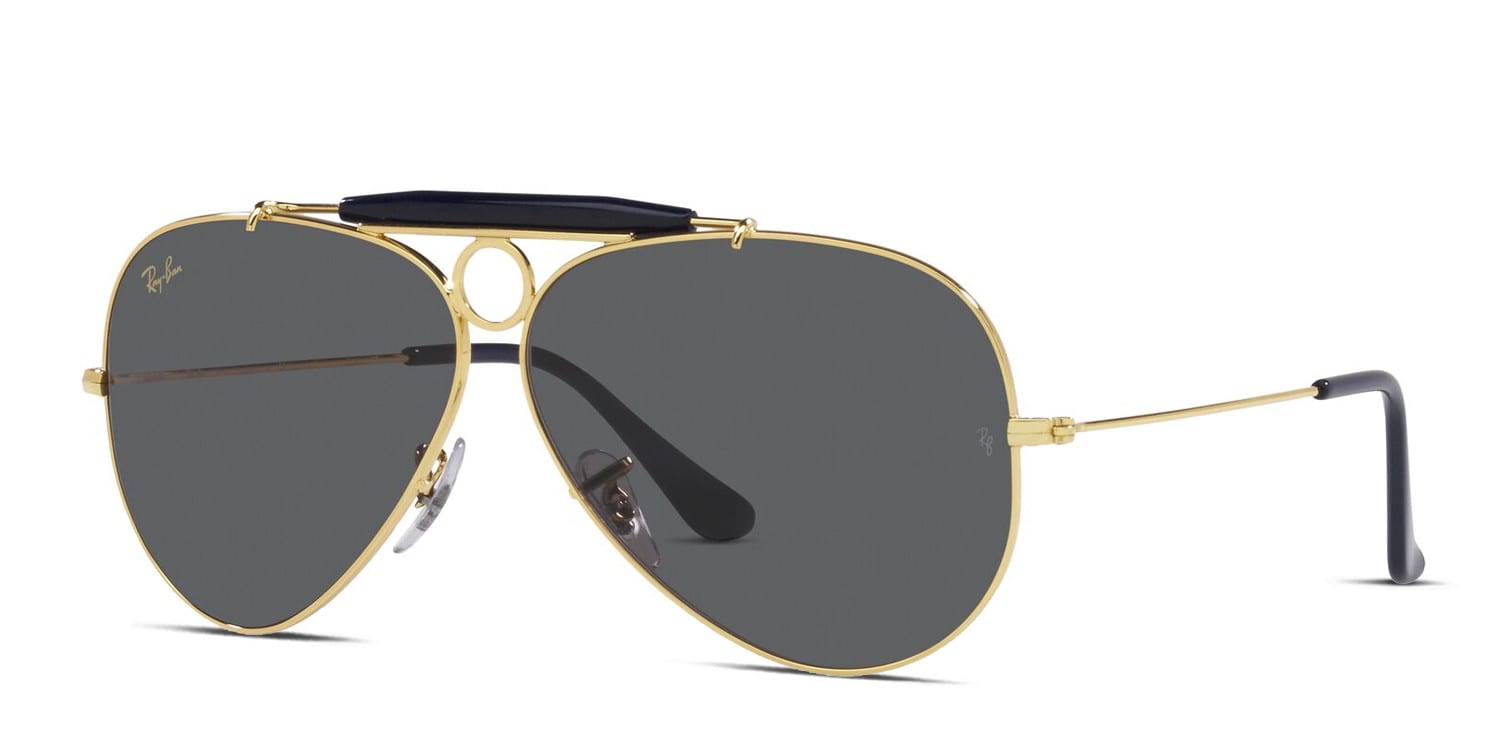 Ray-Ban RB3138 Shooter gold frame with dark grey lenses. Lenses provide 100% UV protection. rb3138