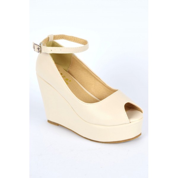 Chaussures femmes petites pointures compensées bride beiges Varda, confort - PETITS SOULIERS chaussures femmes petites pointures
