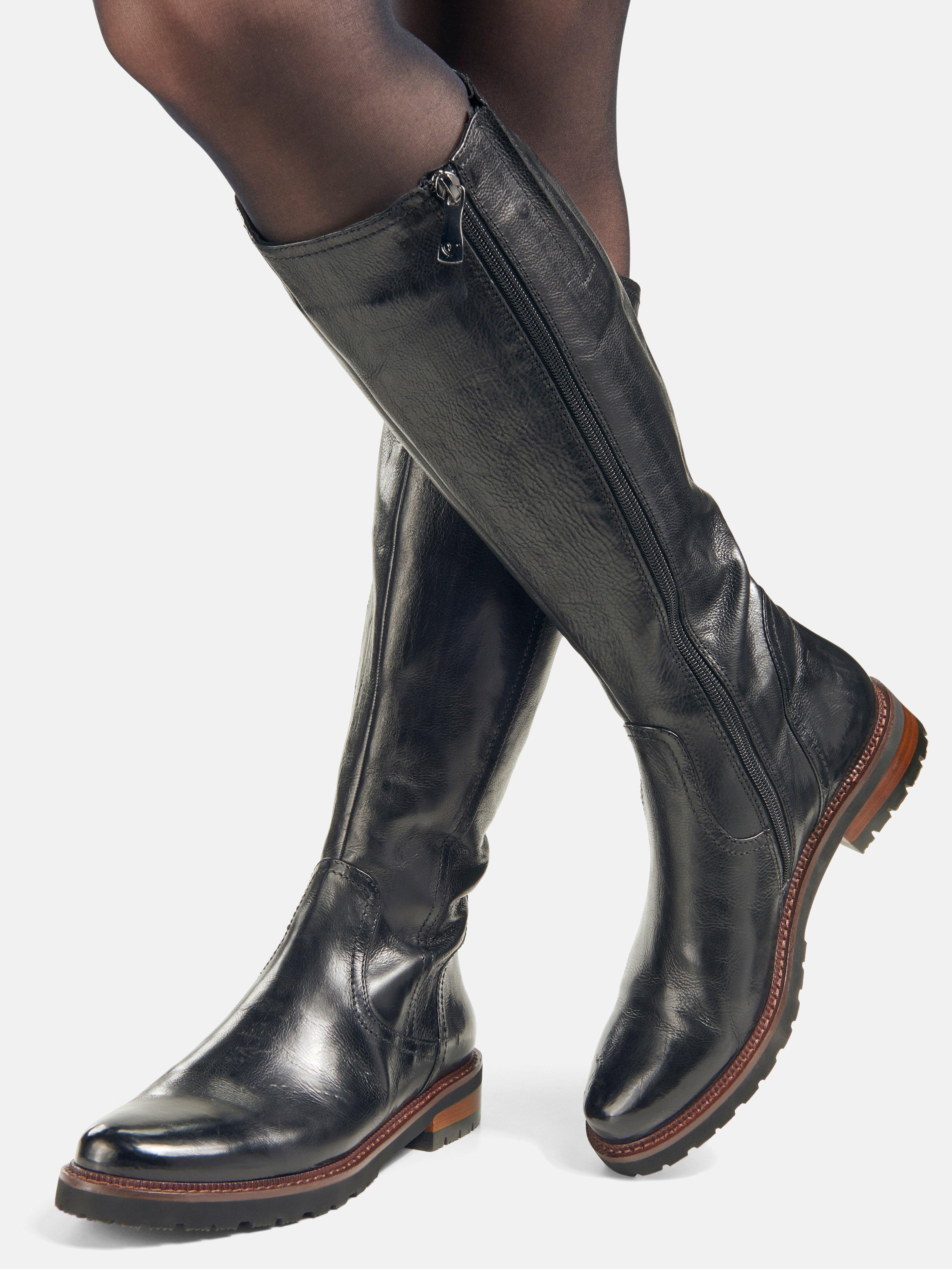 Bottes en cuir, tige XXL, empiècement élastique, largeur H | Bottes | Chaussures bottes tige large