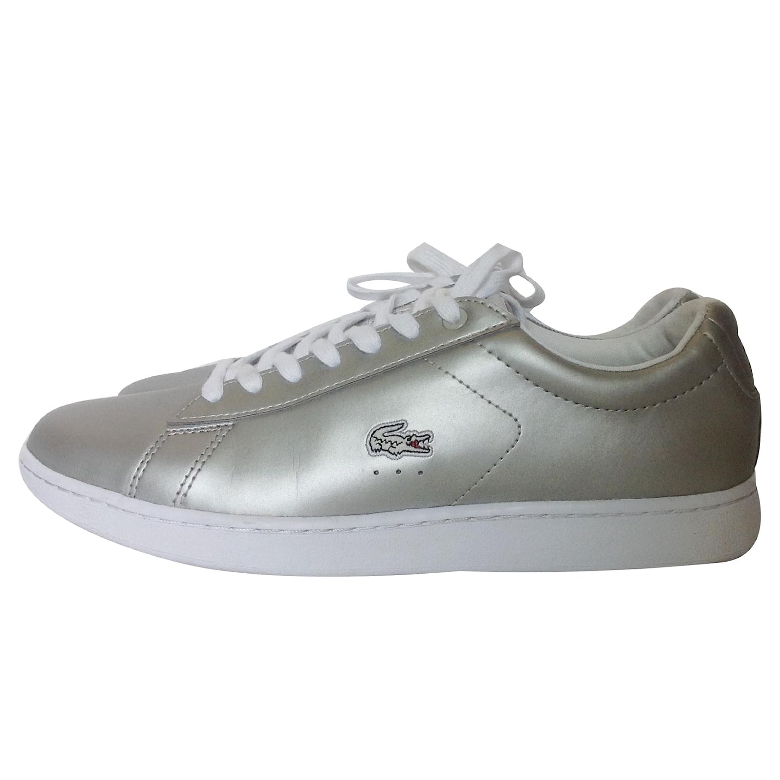 Lacoste Baskets Cuir Argenté Blanc ref.72558 - Joli Closet basket lacoste femme doré