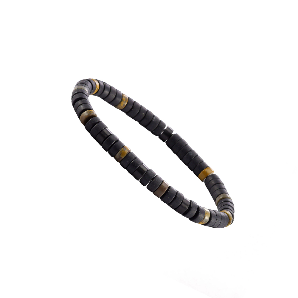 Bracelet perles heishi agate noire mate Åil de tigre - Site officiel Sixtystones - Bracelets agate bbr