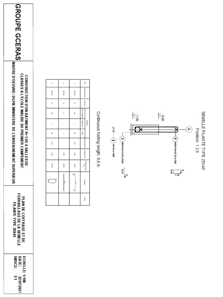 Plan de Coffrage Et Ferraillage de La Semelle Filante Type 25X45 | PDF semelle fila
