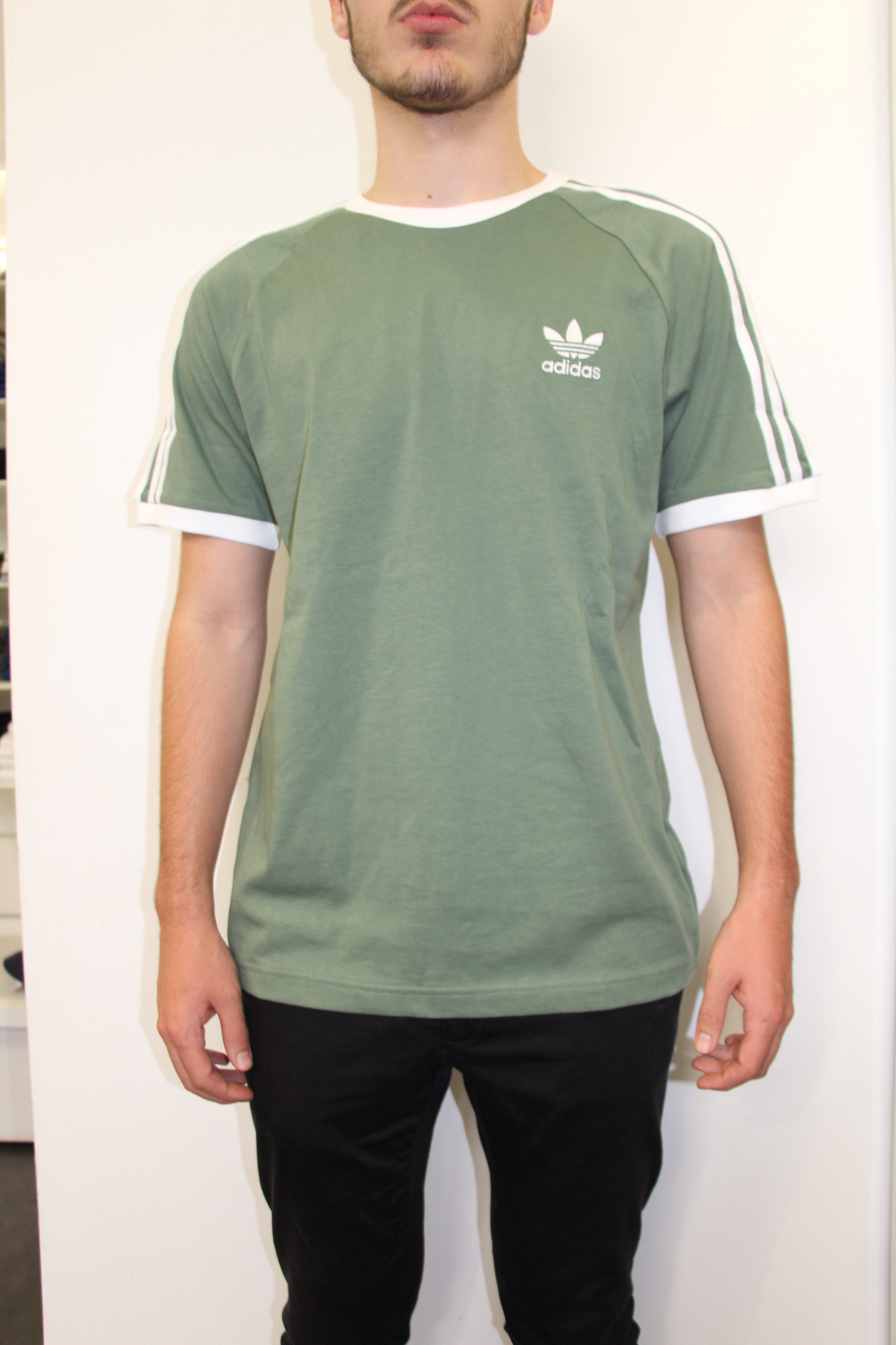 adidas ORIGINALS 3 STRIPE T SHIRT GREEN MENS RETRO CREW NECK SHORT adidas dv2553