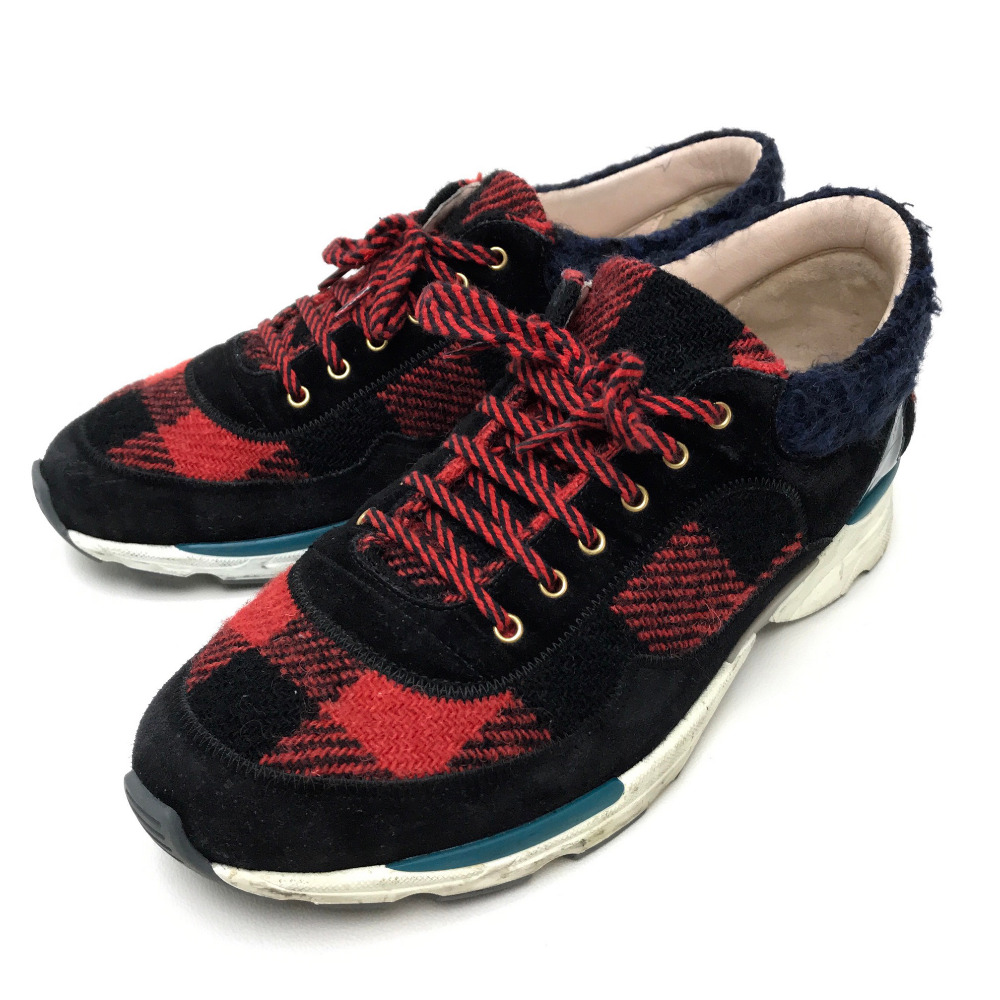 red and black checkered shoes