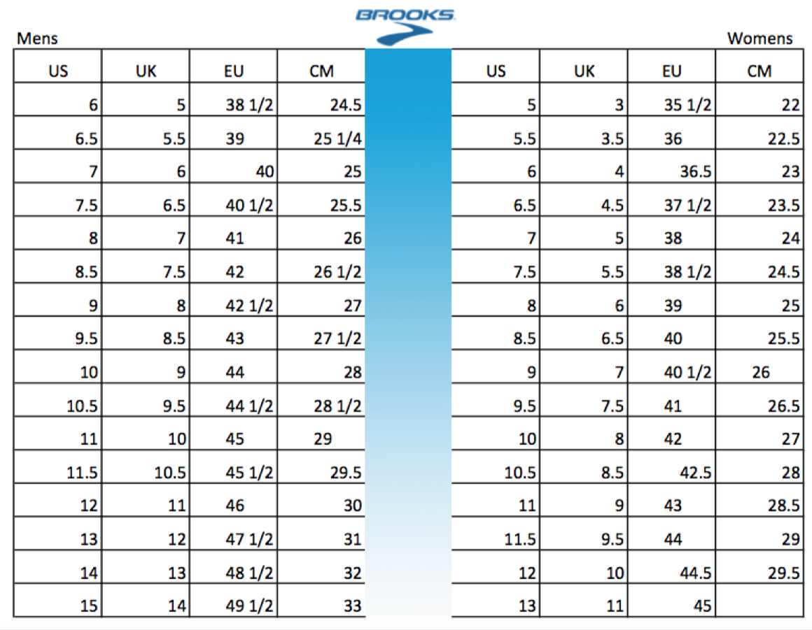 Brooks Shoe Size Chart – SportsPower brooks shoe sizing