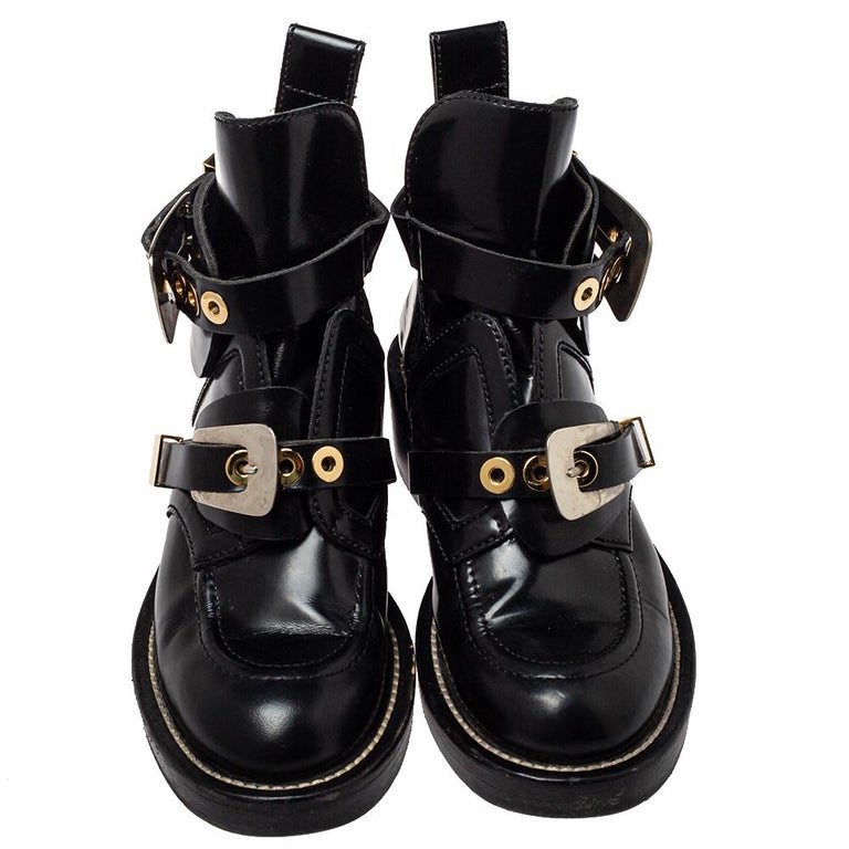 Balenciaga Ceinture Combat Boot Ankle Boot Black Leather Buckles size 39 | Black leather boots balenciaga ceinture ankle boots black