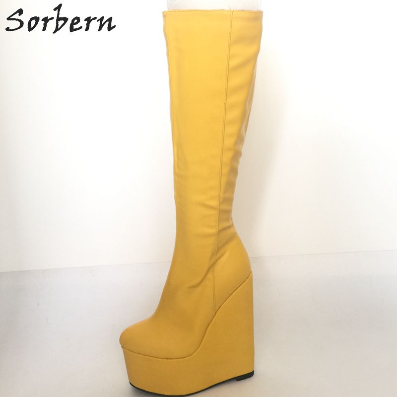 Compre Botas De Mujer De Rodilla Amarillas Botas De Tacón Alto botas amarillas mujer