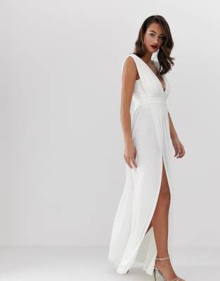 ASOS DESIGN - Premium - Vestito lungo a pieghe con inserti in pizzo vestito fila lungo