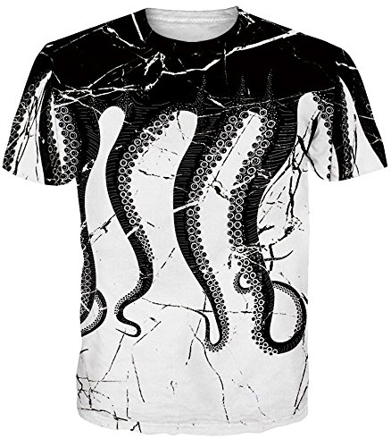 BeautyTop Uomo T-Shirt Camicia Maglietta Sportivi Maniche Corte maglia octopus bianca