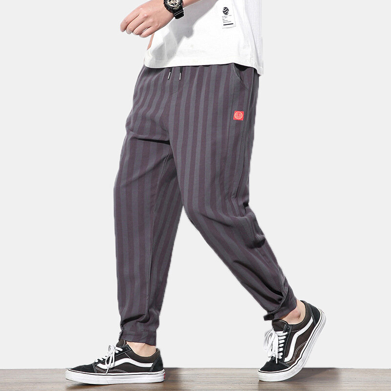 laccio in vita elastico casual da uomo in stile cinese pantaloni pantaloni con laccio in vita uomo