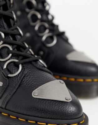 Dr Martens Farylle ribbon lace chunky leather boots in black martens farylle