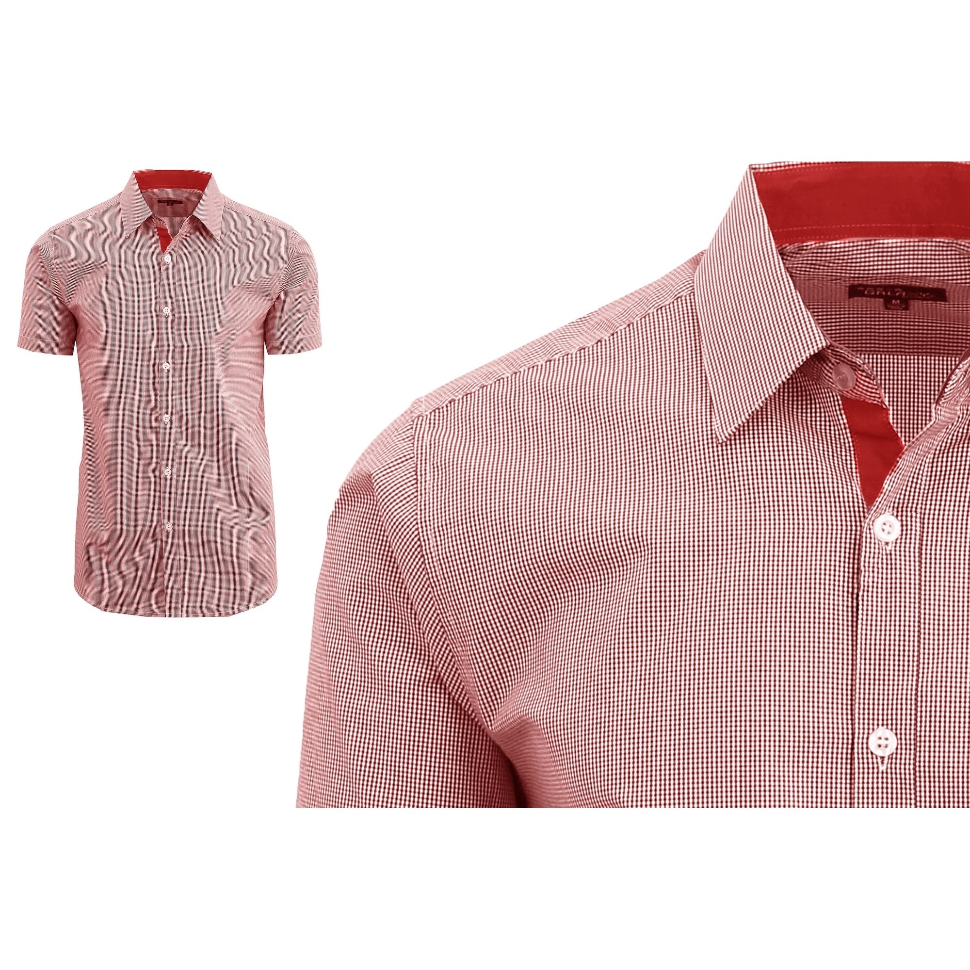 Red White Checkered Mens Short Sleeve mens red short sleeve dress shirt