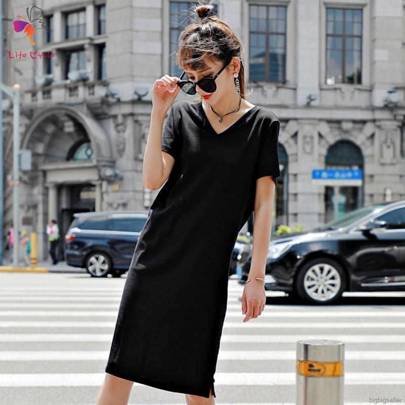 Buy Women's Plus Size Dress Solid Color women's v neck t shirt dress