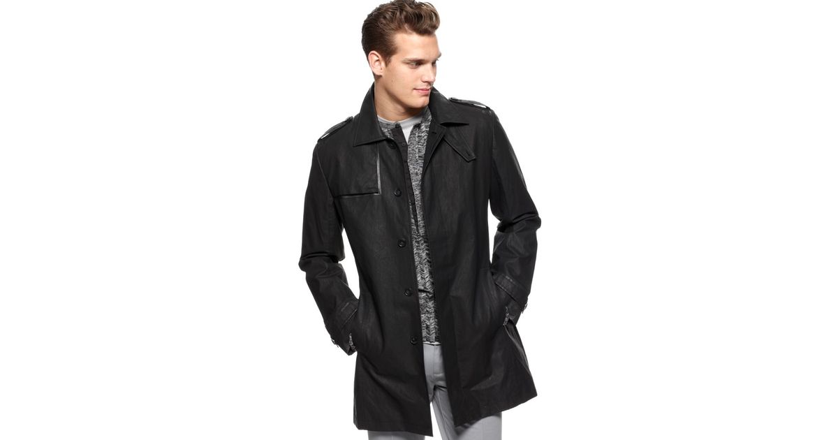 Trench Coat with Faux Leather calvin klein trench coat men