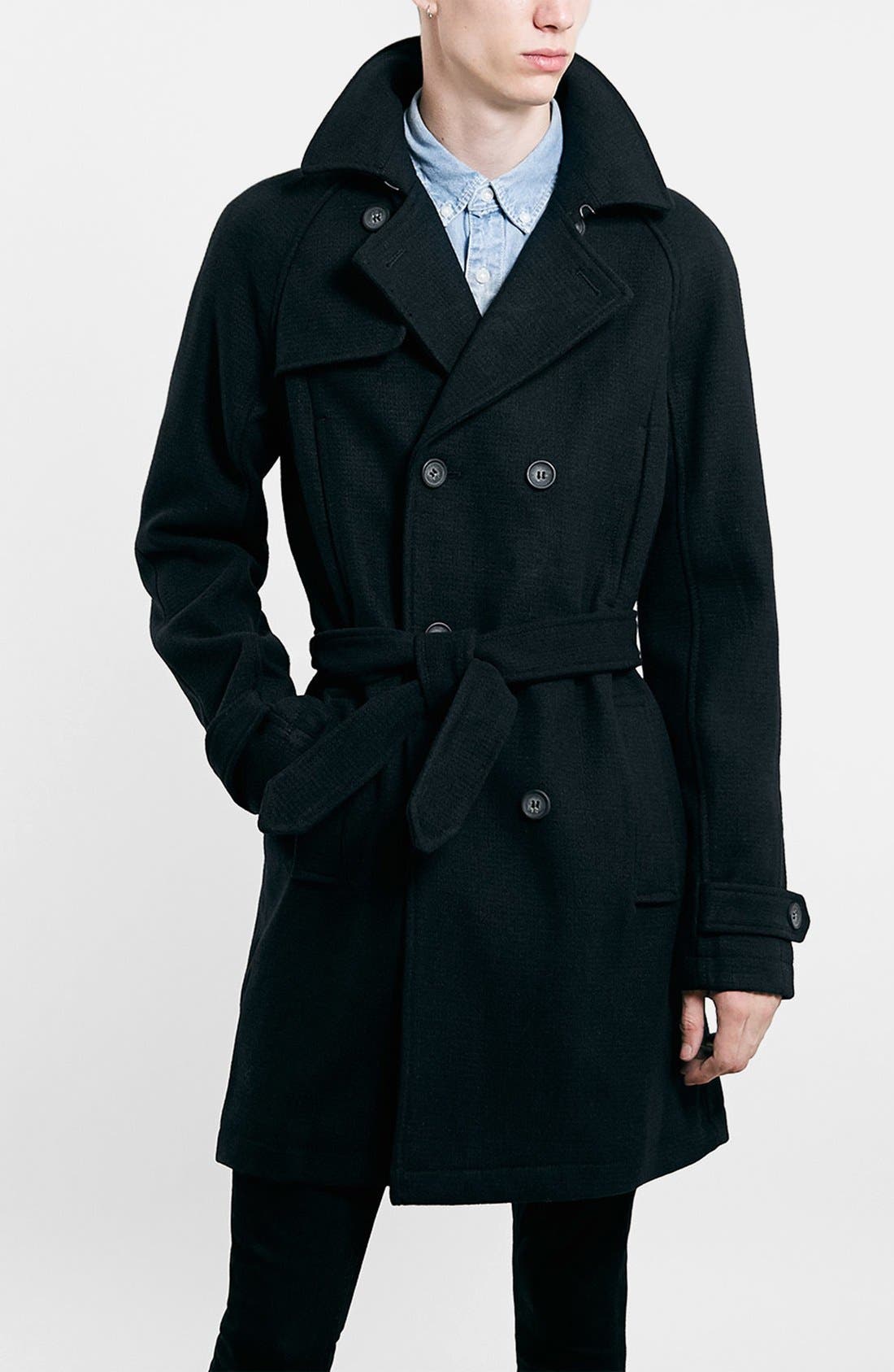 Topman Wool Blend Double Breasted topman trench coat