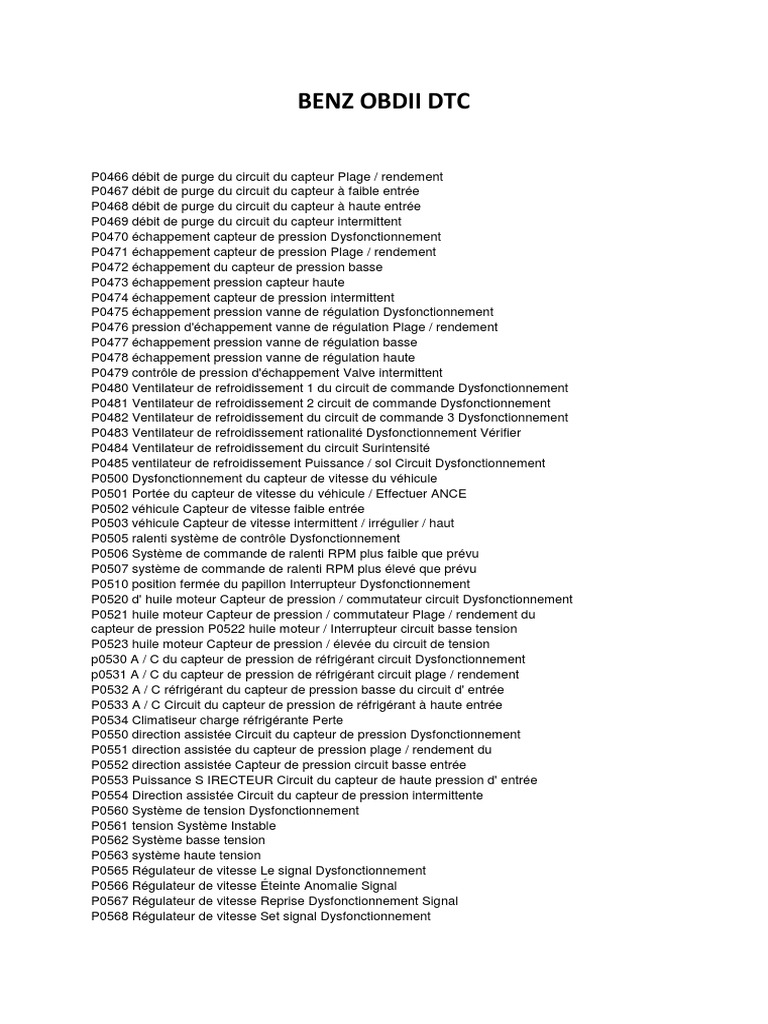 Benz Obdii Dtc | Transmission (Mécanique) | Interrupteur dtc p201c