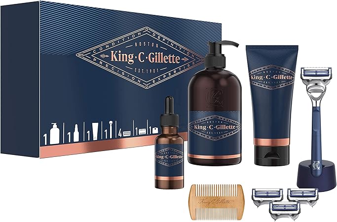 King C Gillette Ensemble cadeau pour homme : rasoir + 3 rasoirs + gel de rasage + gel nettoyant pour barbe et visage + huile pour barbe + peignes barbe + support tondeuse a barbe king c gillette avis