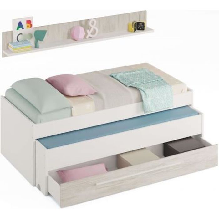 Lit Gigogne JULES (190x90-180x90) avec 1 tiroir et 1 étagère - Couleur - Blanc, Largeur - 90 cm - Achat / Vente lit gigogne Lit Gigogne JULES - Cdiscount lit evolutif jules