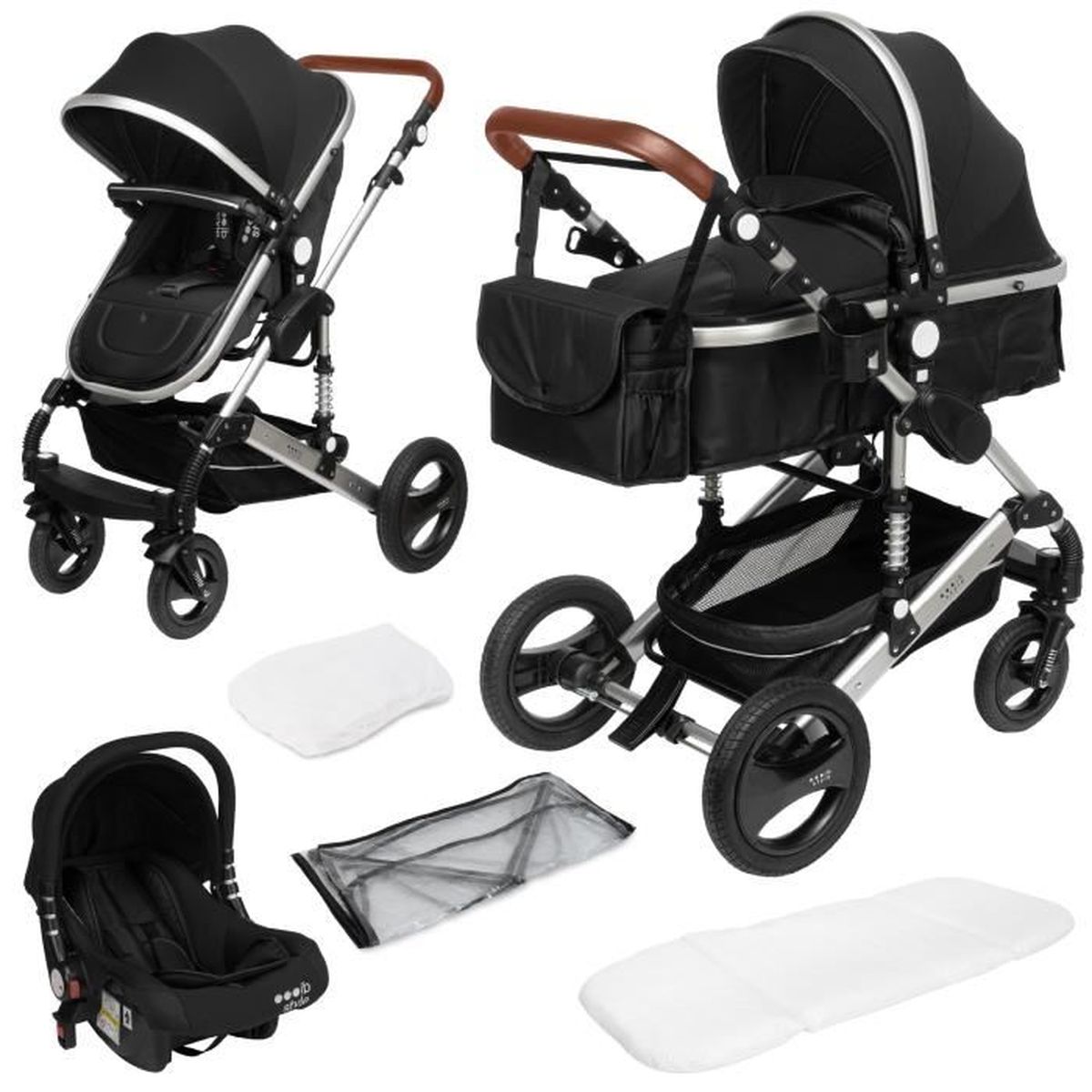 Ib style®SOLE 3 in 1 poussette combinée |Buggy | incl. Siège auto | pliable | 0-15kg |NOIR - ARGENTÉ - Cdiscount Prêt-à-Porter nania poussette combinée 3 en 1 giulia
