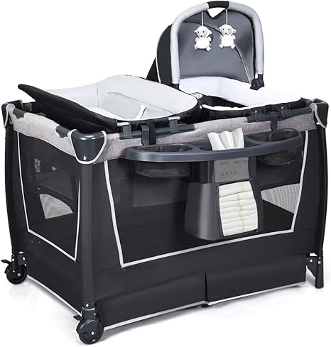 Giantex 5 en 1 lit parapluie pliable pour bébé 0-36 mois lit cododo avec matelas,table à langer,garde-corps réglable,sac et 3 jouets - Vente de Lit bébé - Conforama table a langer pour lit parapluie