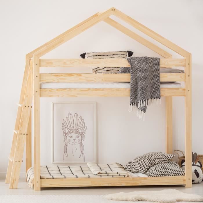 Lit superposé / Lit cabane - DALIDA - 90x160 cm - matelas Funny Dreams - échelle de côté du meuble - Achat / Vente lits superposés DALIDA Lit superposé cabane - Cdiscount mon lit cabane db