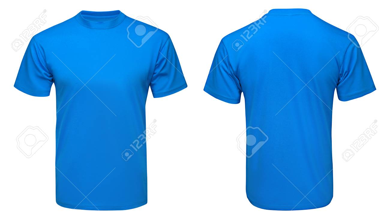 T-shirt Bleu Vierge Maquette Modèle, Vue De Face Et De Dos, Fond Blanc Isolé Banque D'Images Et Photos Libres De Droits. Image 84124298. t shirt bleu