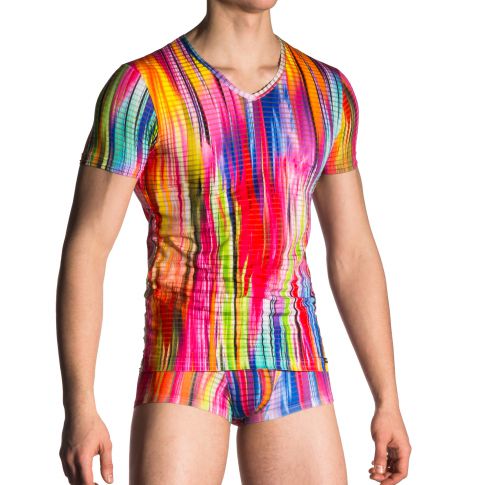 T-shirt multicolor ajoure neck low m704 - manstore - Mengeneration.com tee shirt multicolore