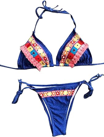 Maillot de Bain Deux Pièces Femme Bikini String Ficelle Culotte Soutien-Gorge de Plage Costume Natation Piscine Tankini Tanga S-XL - Cdiscount Prêt-à-Porter bikini string plage