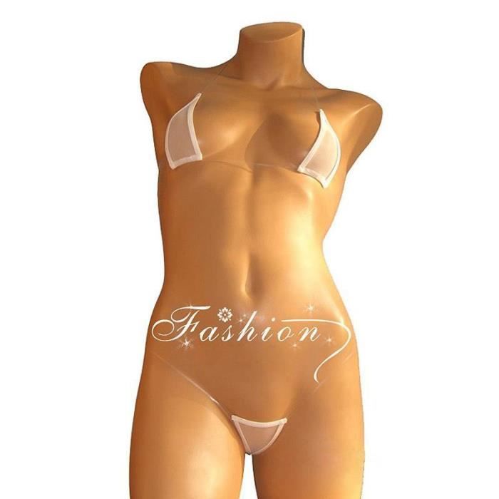 Femmes Sexy Mini Micro Bikini ensemble extrême Transparent Triangle maillot de bain plage haut et bas string - Type white mesh Blanc - Cdiscount Prêt-à-Porter micro bikini triangle