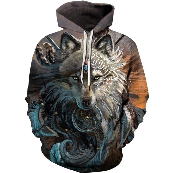 Sweat à Capuche Homme 3D Motifs Pull Fantaisies Loup - 431 Jaune 431 - Cdiscount Prêt-à-Porter pull 3d