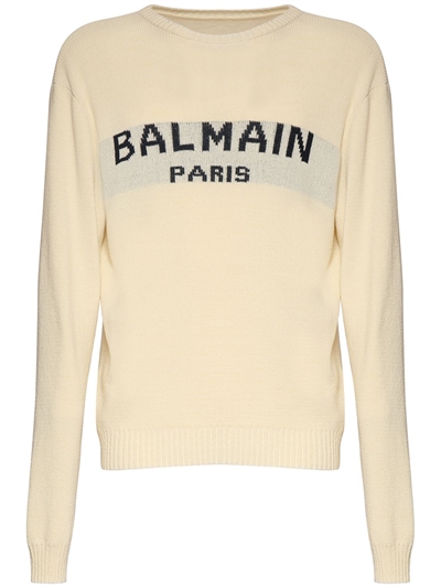 Balmain - Pull-over en coton mélangé - Natural | Luisaviaroma balmain pull