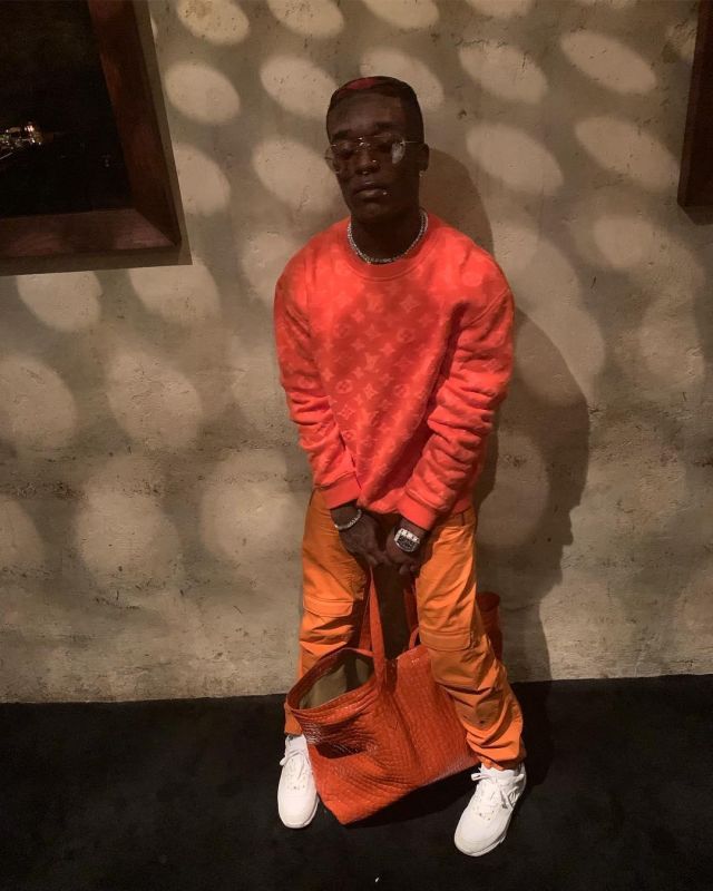 Louis Vuitton Monogram Jacquard Crew Neck L of Lil Uzi Vert on the Instagram account @liluzivert | Spotern louis vuitton pull orange