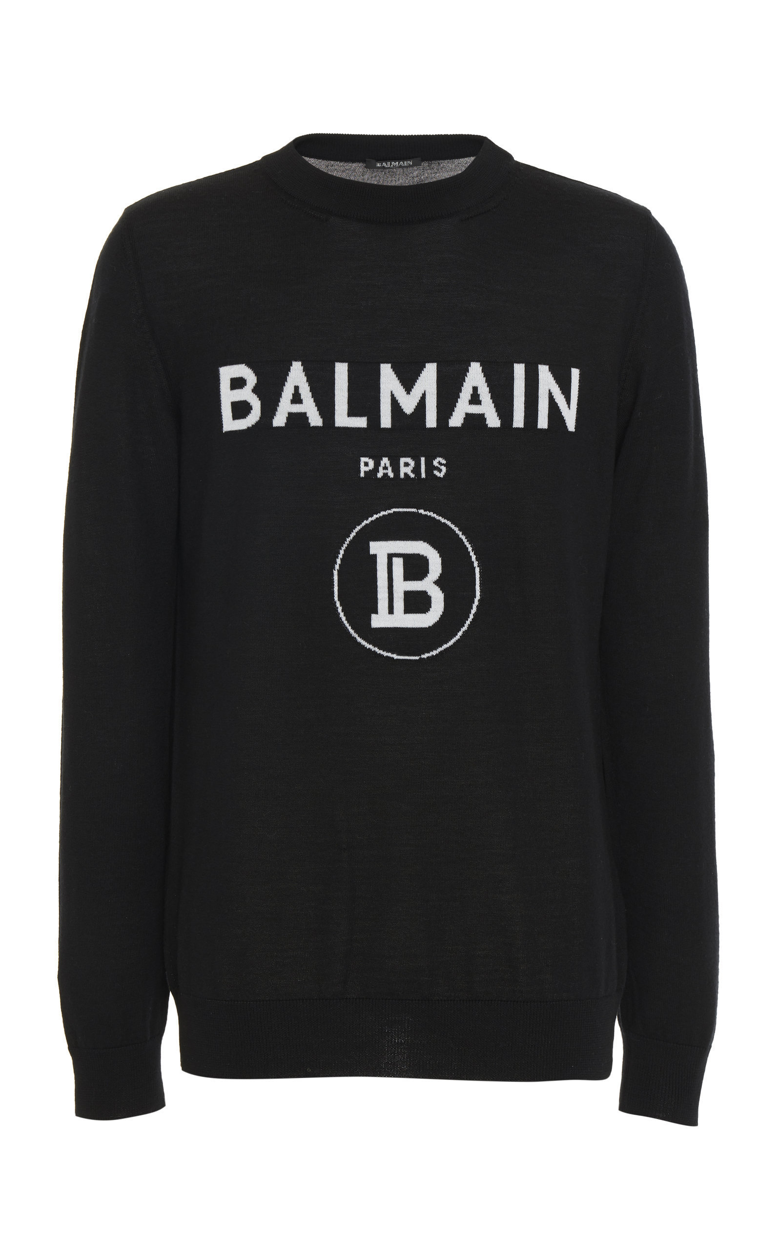 Balmain Crewneck Pull With Logo Intarsia In Black | ModeSens pull balmain