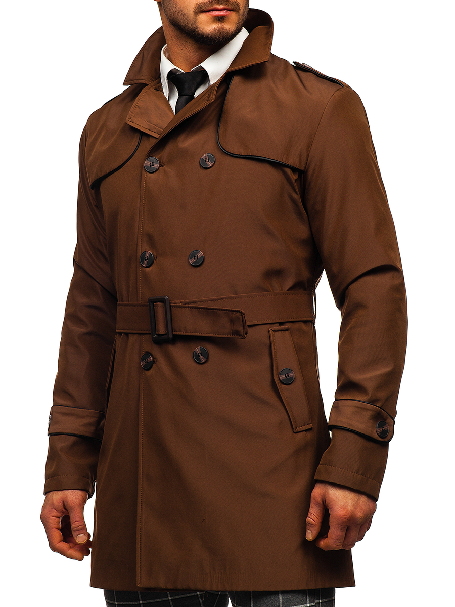 Manteau trench-coat pour homme brun à double boutonnage avec un col montant et une ceinture Bolf 0001 MARRON manteau trench homme