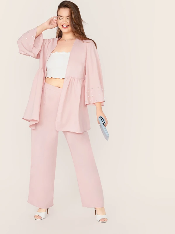 Ensemble manteau à perles et pantalon ample | Mode en ligne | SHEIN FRANCE ensemble pantalon ample