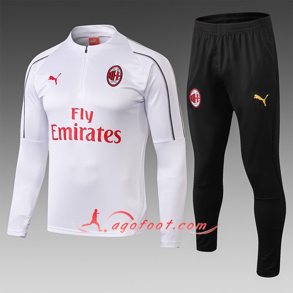 Nouveaux Survetement De Foot AC Milan Enfant Blanc Floqué 2018 2019 Pas Cher survetement foot milan ac