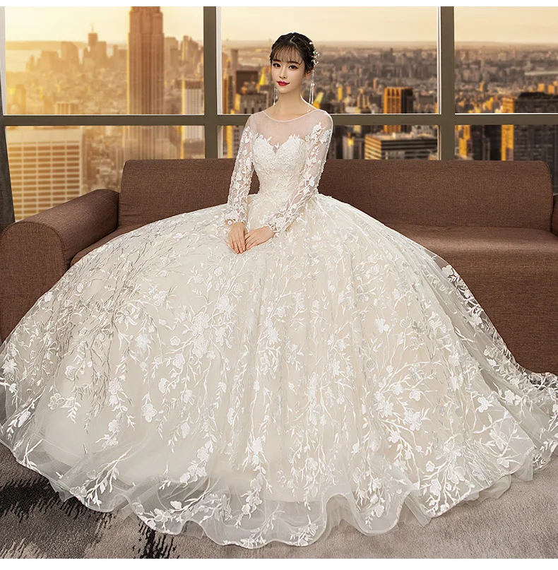 Robe de mariée de luxe château princesse, robes de mariée blanches à manches longues, col bateau avec appliques, personnalisées | AliExpress robe de mariée princesse luxe