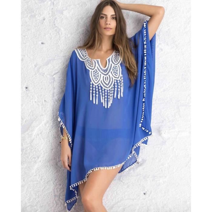Femmes caftan robe Bikini Plage manteau sarrau mousseline de soie Bat chemise bleu - Cdiscount Prêt-à-Porter caftan plage
