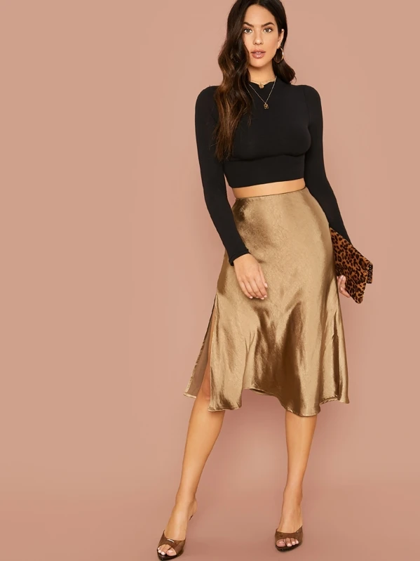 Jupe fendue en satin à taille élastique | Mode en ligne | SHEIN FRANCE jupe satinée