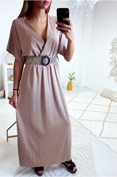 Longue robe style kimono en beige avec ceinture robe kimono longue