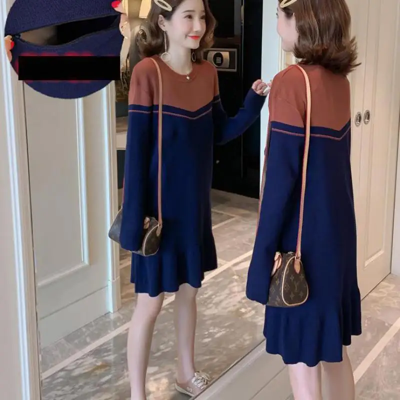 Robe de maternité d'hiver pour femmes enceintes, pull over de couleur noire en polaire doublé, robe pull d'extérieur 1661050 | AliExpress robe pull allaitement