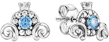 New 100% PANDORA Blue Disney Cinderella Pumpkin Coach Stud Earrings 299193C01 299193c01