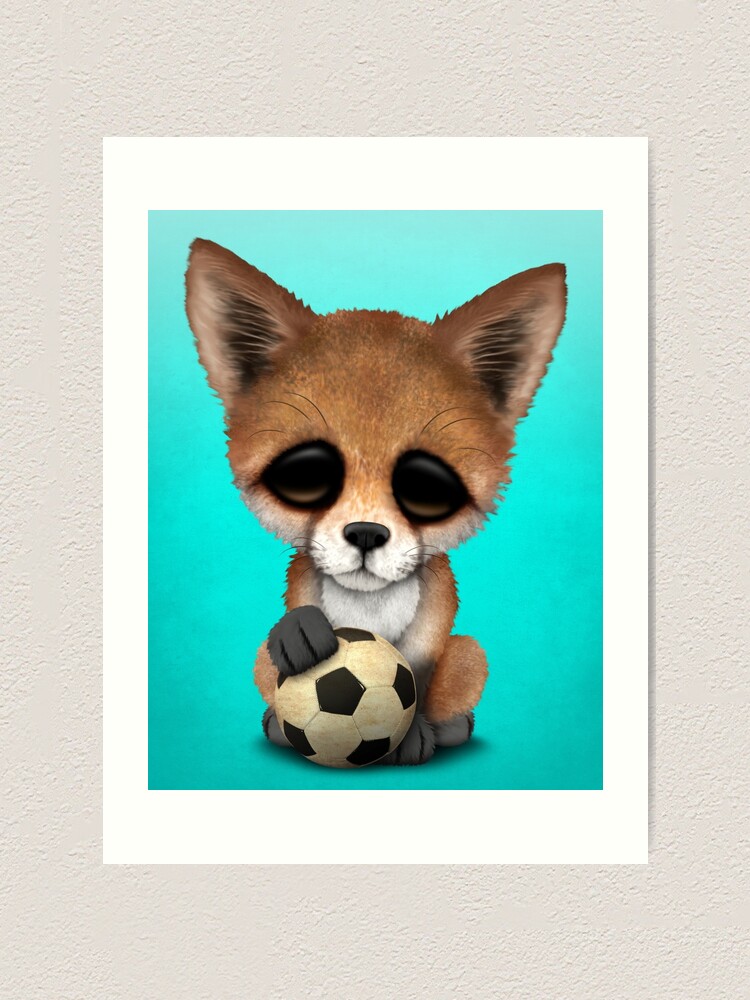 Impression artistique « Joli bébé renard avec ballon de foot », par JeffBartels | Redbubble ballon de foot bebe