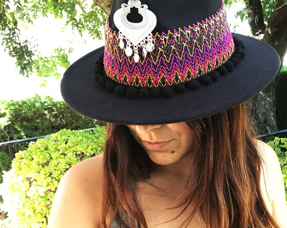 Chapeau noir gitan. Chapeau Fedora boho. | Etsy chapeau gitan