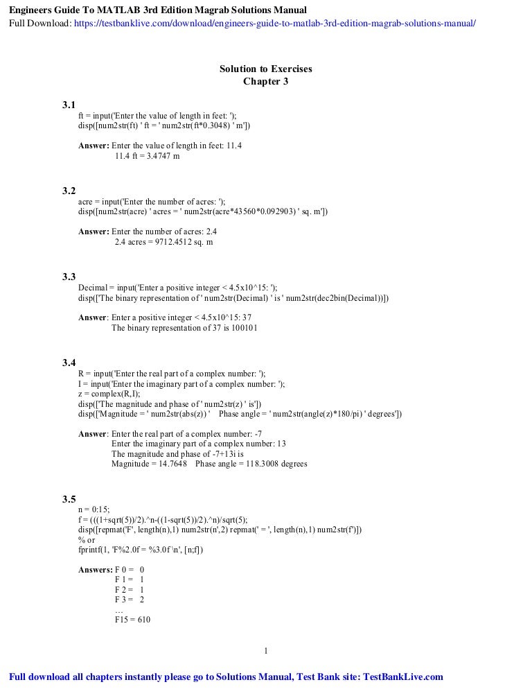 Engineers Guide To MATLAB 3rd Edition Magrab Solutions Manual num2str